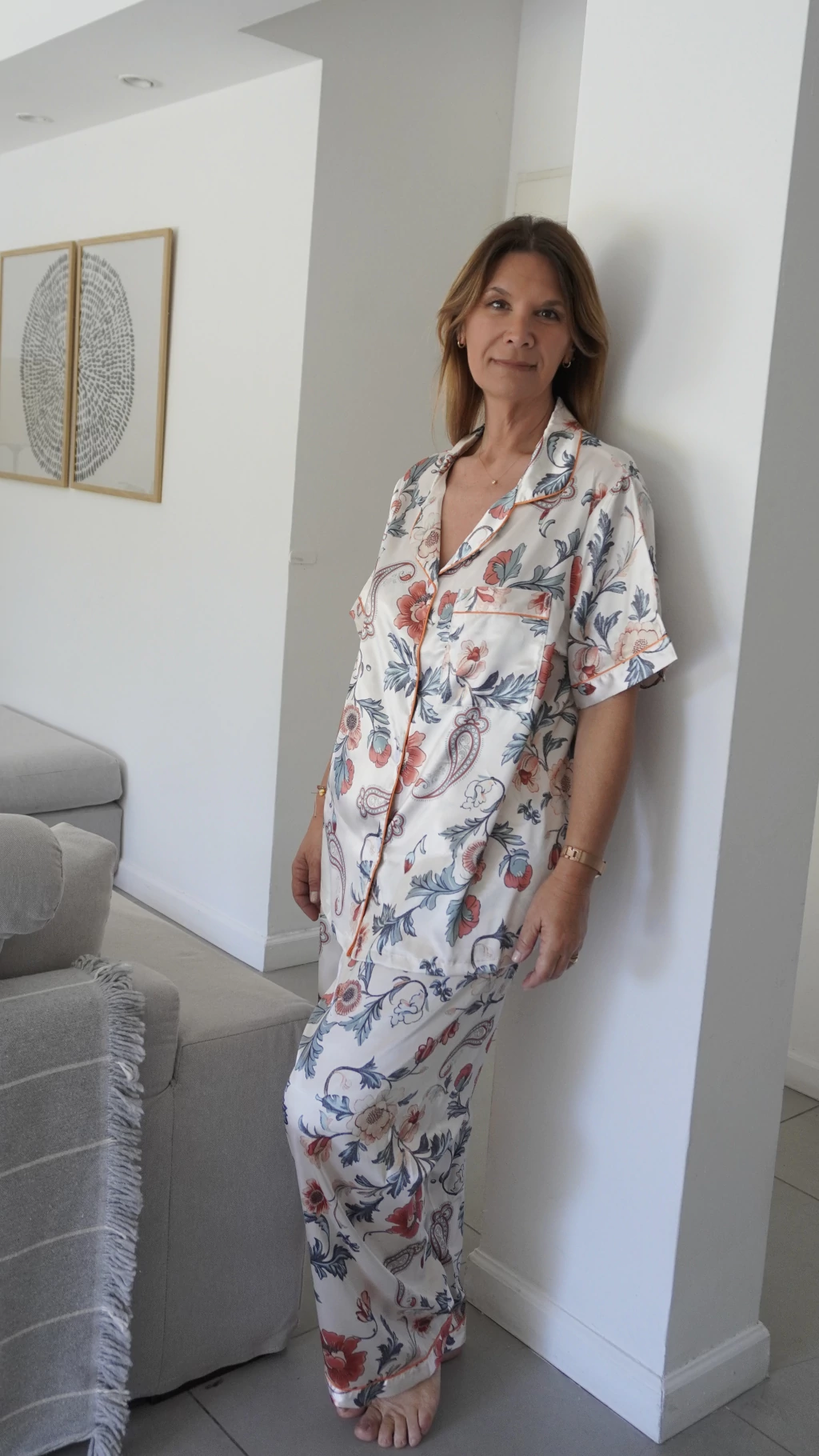 Medidas T.1XL: ancho de hombros 47 cm, contorno de pecho 120 cm, largo de camisa 68 cm. Contorno de cintura 88 cm sin estirar y 106 cm estirada, contorno de cadera 136 cm , largo de pantalón 102 cm.