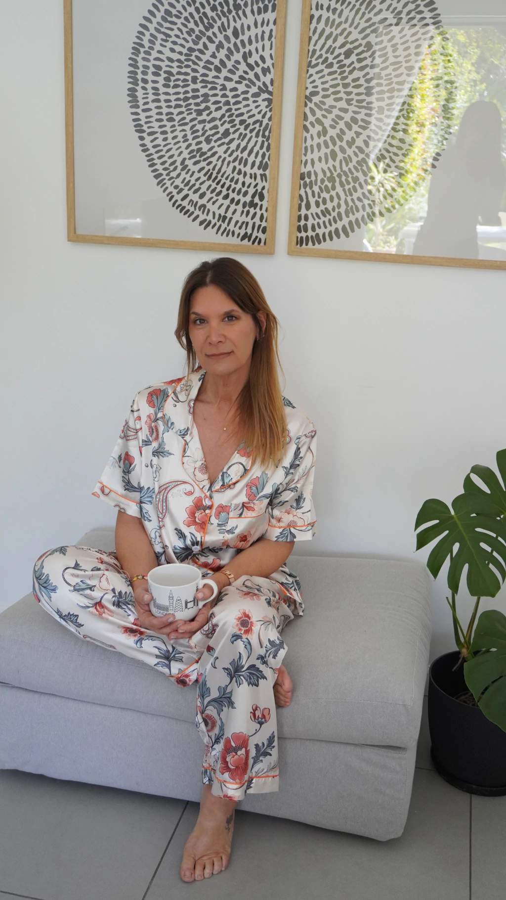 La tela tiene una estampa super alegre beige con estampa de flores